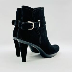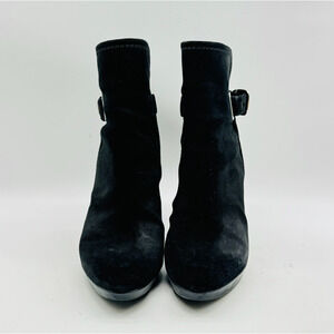 Stuart Weitzman Boots Womens 6 Black Suede Ankle Bootie Heeled Buckle Shoes
