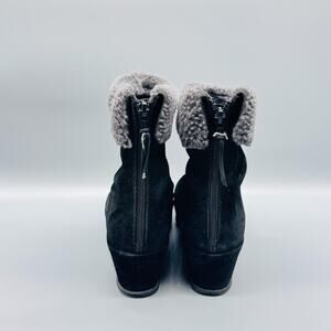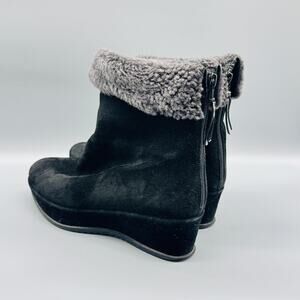 Stuart Weitzman Boots Womens 8.5 Black Suede Faux Shearling Wedge Ankle Zip