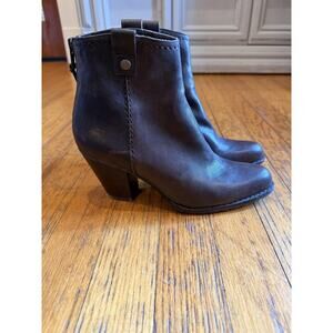 Stuart Weitzman Boots Womens Size 6.5 Brown Leather Ankle Block Heel Zip OW32737