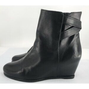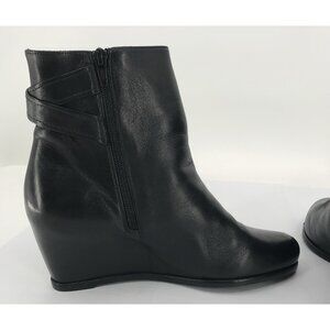 Stuart Weitzman Boots Womens Size 8.5 Black Leather Hidden Wedge Side Zip