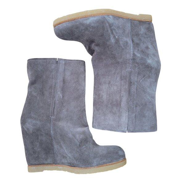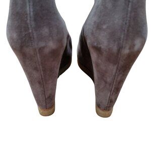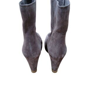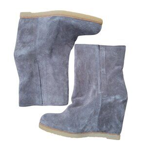 Stuart Weitzman Bootscout Seal Gray Suede Wedge Chelsea Boots 8M Hidden Heel