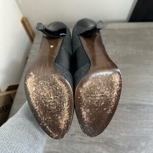 Stuart Weitzman 'Bouffant' Gray Flannel Satin Bow High Heeled Booties Shoes sz 6.5