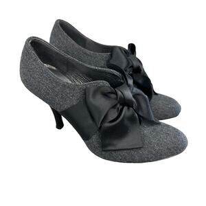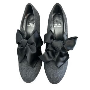 Stuart Weitzman Bouffant Gray Flannel Satin Bow Heeled Booties 6.5