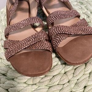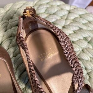 Stuart Weitzman Bounceraf Braided Soft Brown Leather Crisscross Strappy Sandals