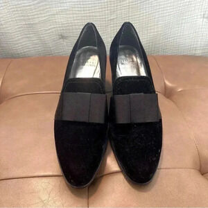 Stuart Weitzman Bow Loafers With Heel Black Velvet Size 8 EUC