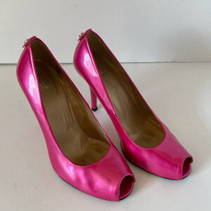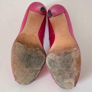 Stuart Weitzman Bright Pink Patent Leather Peeptoe Pumps, Size 7 🗣