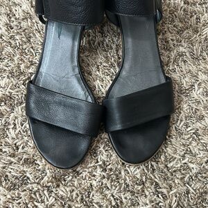 Stuart Weitzman Broadband Leather City Sandal Sz 9 1/2 N Step out in style with these elegant black women's sandals. Perfect for any occasion, these shoes offer both comfort and sophistication. Has some wear on the foot beds shown and light marks on the block heel. Velcro closure on the ankles. Always open to offers bundle and save more! Always fast shipping!