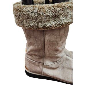 Stuart Weitzman Brown Leather Faux Fur Lined Boot Womens Size 11.5