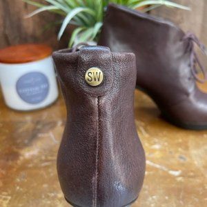 Stuart Weitzman Brown Leather Lace Up Heeled Boots, Size 6