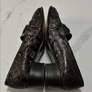 Elevate your style with these Stuart Weitzman brown loafers. Featuring a striking silver accent, these shoes offer both elegance and comfort. Perfect for any occasion.