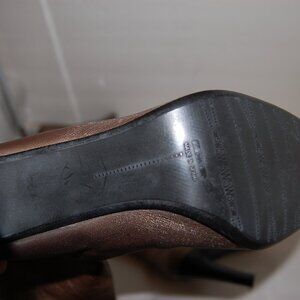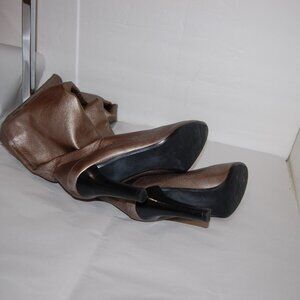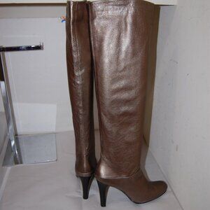 Elegant over the knee boots. Rich brown leather. Sleek high heel design.