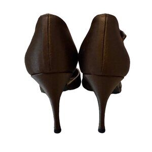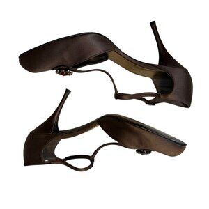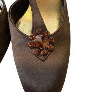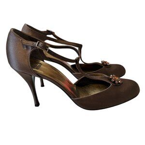 Stuart Weitzman Brown Satin Swarovski Crystal Embellished T-Strap Heels size 9.5