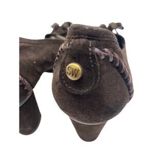 Stuart Weitzman Brown Suede 3” Heel Loafer tassels size 10 Made in Brazil