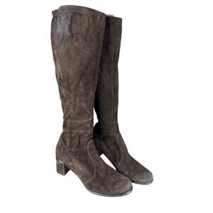 Stuart Weitzman Brown Suede Knee High Boots Block Heel Women’s Size 8