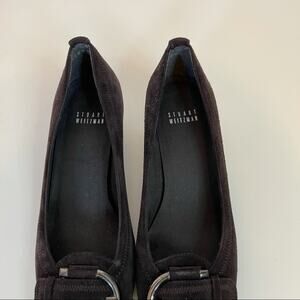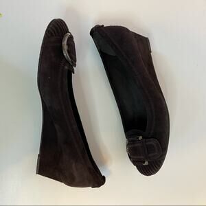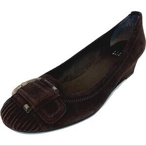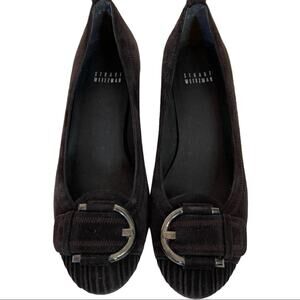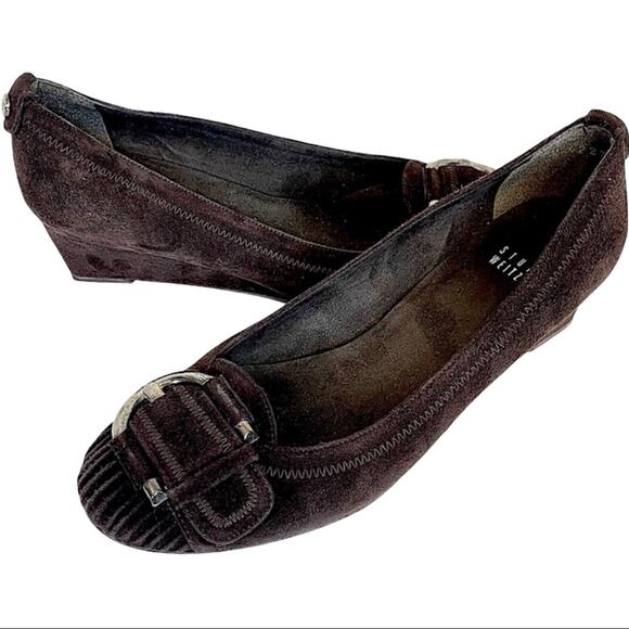Stuart Weitzman Brown Suede Leather Buckle Wedge Shoes Women's Round Toe Size 6