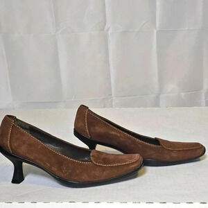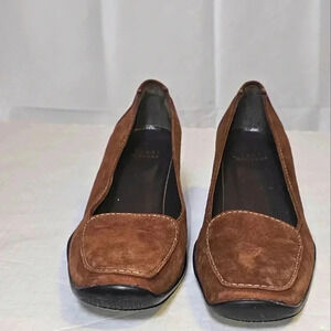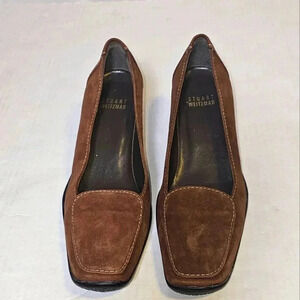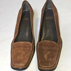 Stuart Weitzman Brown Suede Square Toe Loafer Heels, Size 6