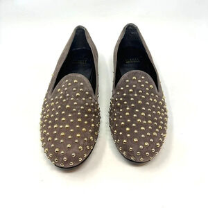 Stuart Weitzman Brown Tan Suede Gold Studded Flat Loafers Size US 7.5