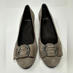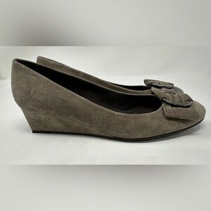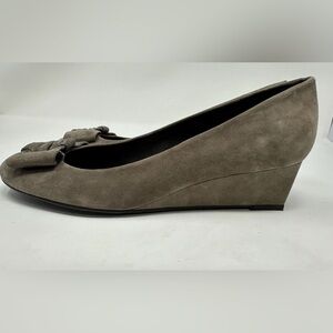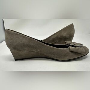 Stuart Weitzman Brown Taupe Suede Slip On Wedge Heels Buckle Womens 10