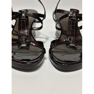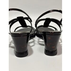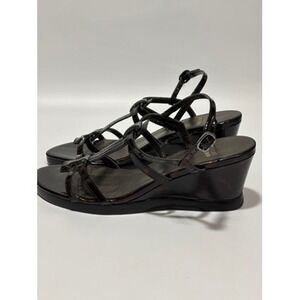Stuart Weitzman Brown Tortoise Patent Leather Wedge Sandals Women's 8M Strappy