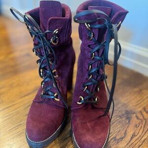 Stuart Weitzman Burgundy Lace-Up Boots