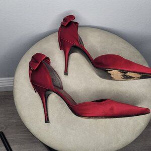 Stuart Weitzman Burgundy Satin Bow Pumps – Size 12M