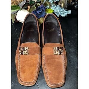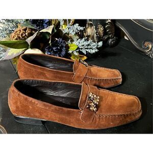 Stuart Weitzman CIA Brown Suede Rhinestoned Loafers Size 7.5 N