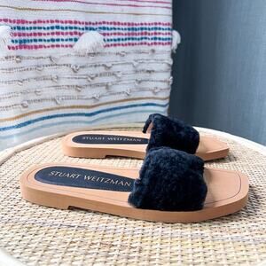 Stuart Weitzman Cammy Shearling-Strap Slide Sandals Women’s Size 6.5