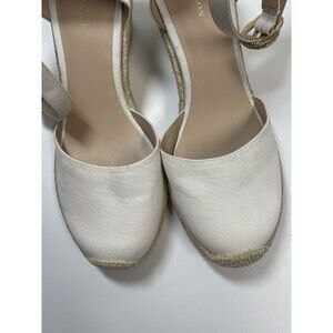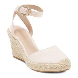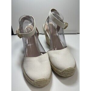 Stuart Weitzman Canvas Wedge Espadrilles In Cream W/Crystal Buckle Sz 10.5 New
