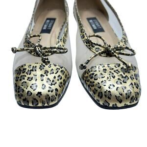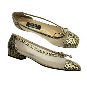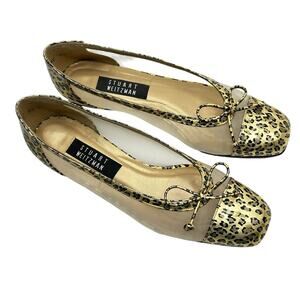 Stuart Weitzman Cap Toe Ballet Flats Size 8.5 Mesh Metallic Leopard Mob Wife