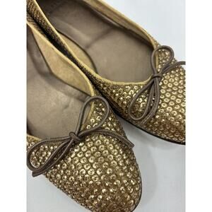 Stuart Weitzman Casino Sequin Ballet Flats Gold 7.5 M Bows See photos for condition - good condition, no flaws other than wear Size 7.5