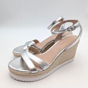 Stuart Weitzman Catlina Espadrille Wedge Sandal Women's Silver Size US7.5B EU38
