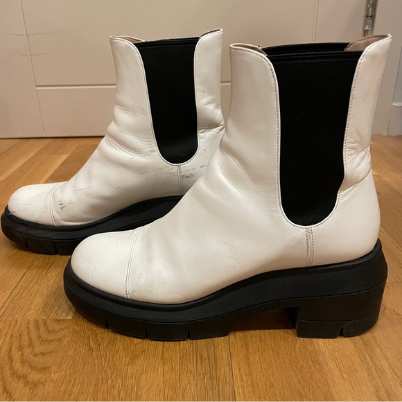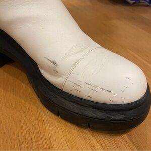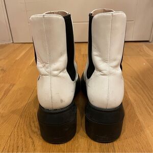 White leather with black elastic and lug sole