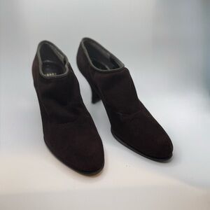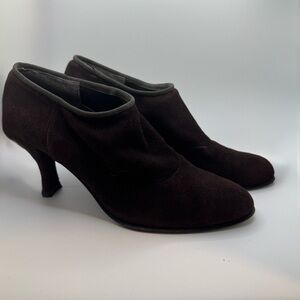 Stuart Weitzman Chocolate Brown Suede Stretch Kitten Heel Shootie