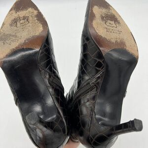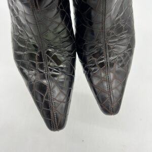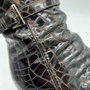 Stuart Weitzman Chocolate Polished Crocodile Patent Zip Bootie With Buckle 6.5B