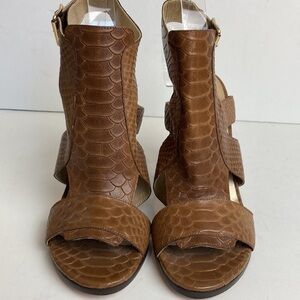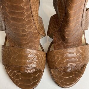 Stuart Weitzman Safety Chunky High Heel Shoes in Toffee Camel Brown King Cobra Size 8.5