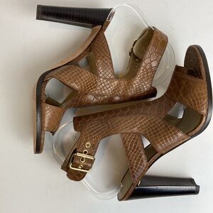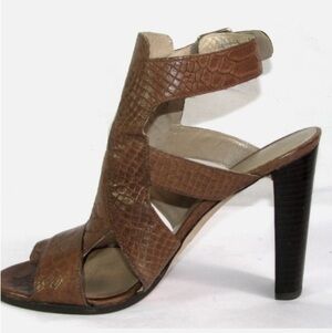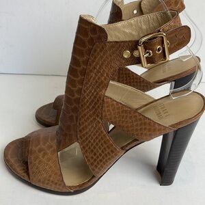 Stuart Weitzman Safety Chunky High Heel Shoes in Toffee Camel Brown King Cobra Size 8.5
