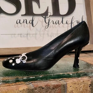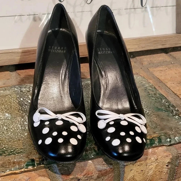 Stuart Weitzman 'Circles' Heels Leather Polka Dot Bow Wmns Sz 7 Narrow 5W630481