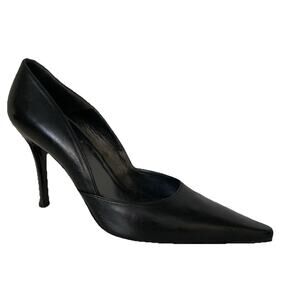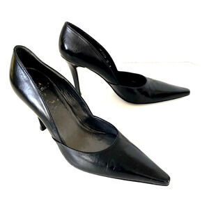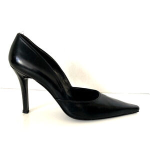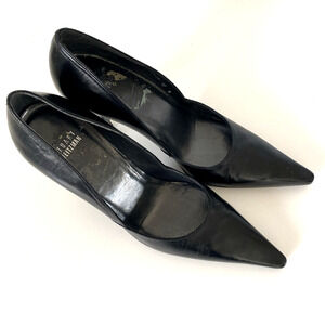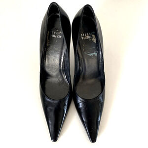 Stuart Weitzman Classic Pump Black Leather Point Toe Slim Heel Stiletto 10