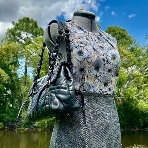Stuart Weitzman Collection Black Leather Double Strap Turnlock Flap Shoulder Bag
