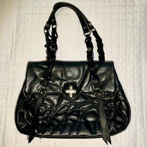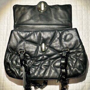 Stuart Weitzman Collection Black Leather Double Strap Turnlock Flap Shoulder Bag