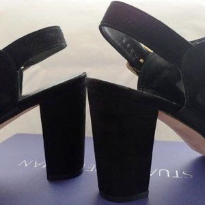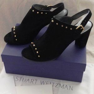 Stuart Weitzman Commodore Black Suede Slingbacks Open Toe 3.75 Heel Size 10 NIB