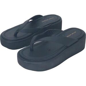 Stuart Weitzman Contempo Black Thong Flatform Sandal for Women Size 5.5B