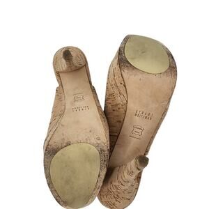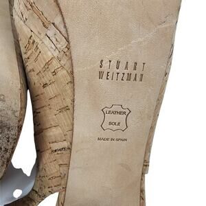Stuart Weitzman Cork Leather Ankle Strap Slingback Platform Heel Size 8.5M