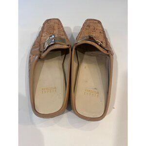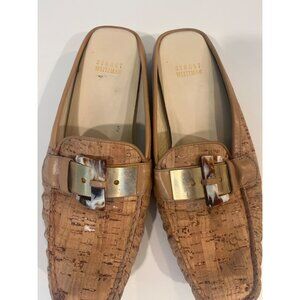 Stuart Weitzman Cork Mules W/ Gold & Tortoise Buckle Detail Womens Size 9M