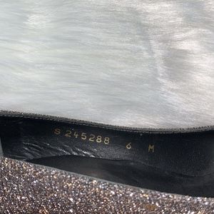 Material: Metallic lurex fabric upper/leather lining/rubber sole/cushioned leather footbed