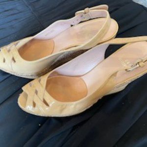 Stuart Weitzman Cream Tan Patent Leather Wedge - Size 7.5. These shoes are in like new condition.