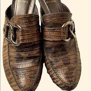Stuart Weitzman Croc Embossed Mules Clogs Shoes Size 10