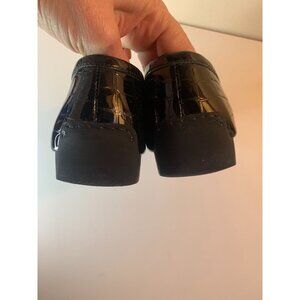 Stuart Weitzman Croc Embossed Patent Leather Loafer Shoe Black 8 M