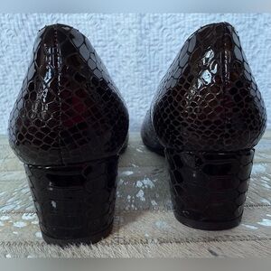 Keyword search: stuart weitzman pumps, croc embossed shoes, brown wedge heels, low wedge pumps, work shoes women, comfort heels, leather pumps, designer shoes