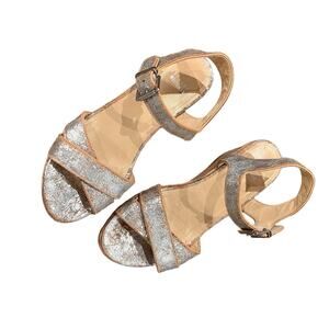 * Features: Adjustable strap at ankle / cracked metallic leather / platform wedge / criss-cross straps / summer / party